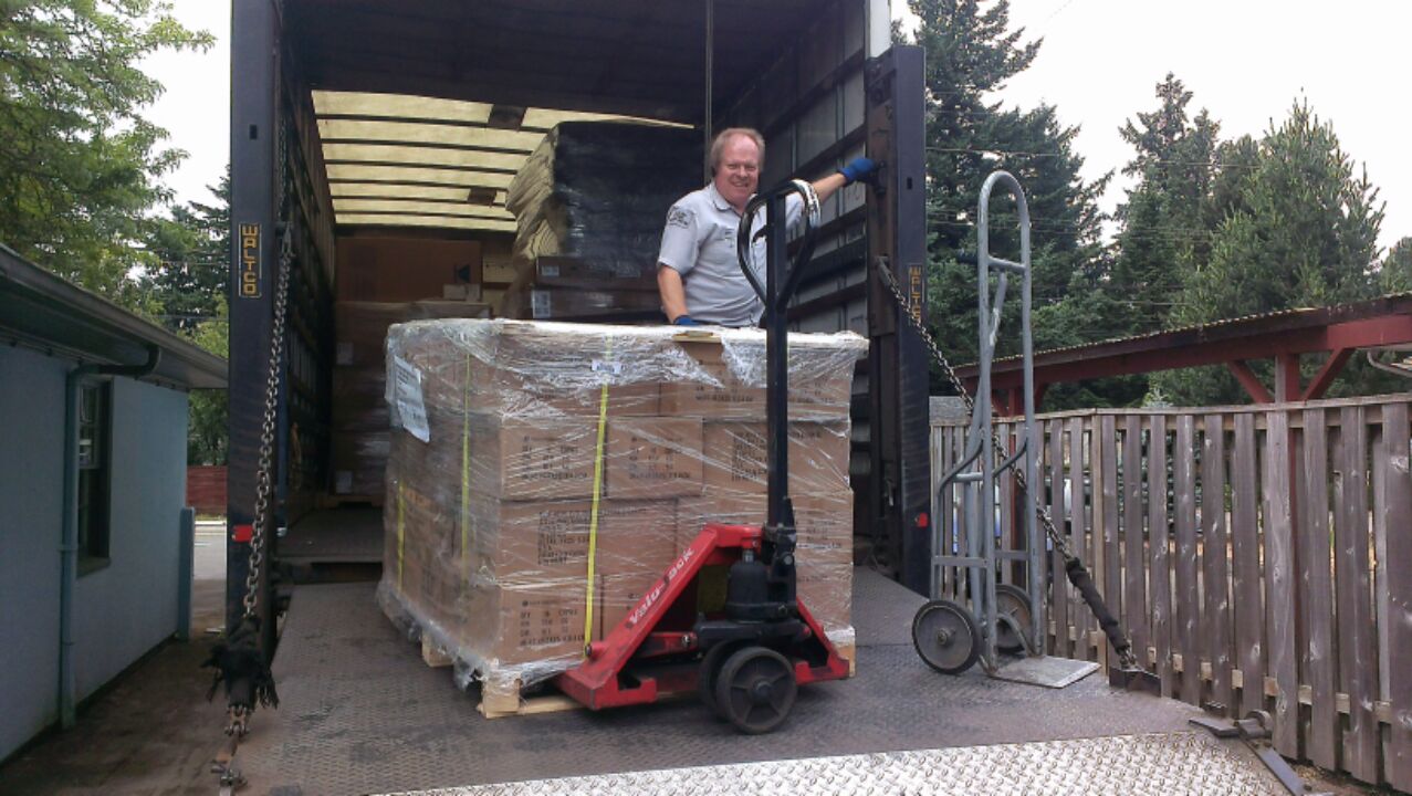 Then, today, the truck arrived at the office! The staff (William, Kendy and Jenn) all pitched in to unload the boxes of books and direct where they will be stored. They are all very excited to have the books in house.