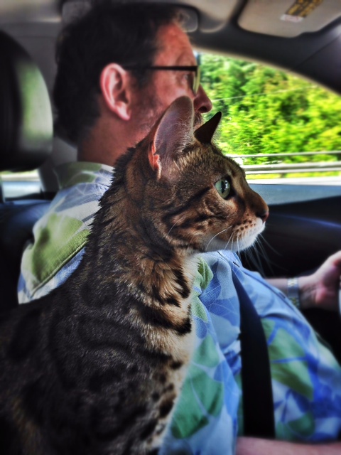 Of course, it has to arrive when I am out of town!  We had already delayed one day, and couldn’t wait longer, so Bill, the cats and I, headed to Sunriver.  Jedi decided to copilot.
