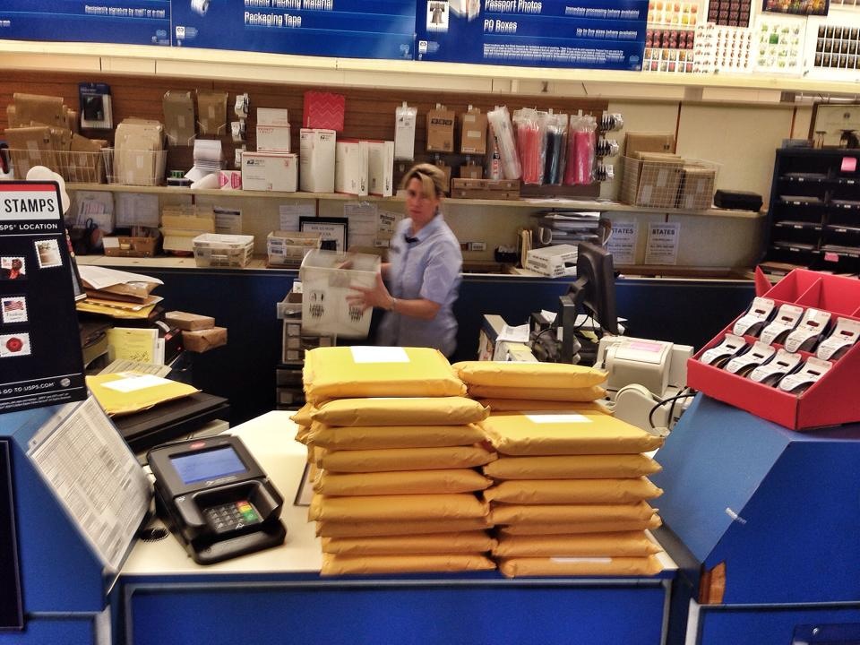He was so impressed with the Post Office, that it is now going to become our “go-to” post office. No line, the workers were charming, patient and helpful. When someone else came in who needed help, another worker came out to take care of them. They helped Bill fill out the customs forms, and counted to make sure all the books were accounted for.
