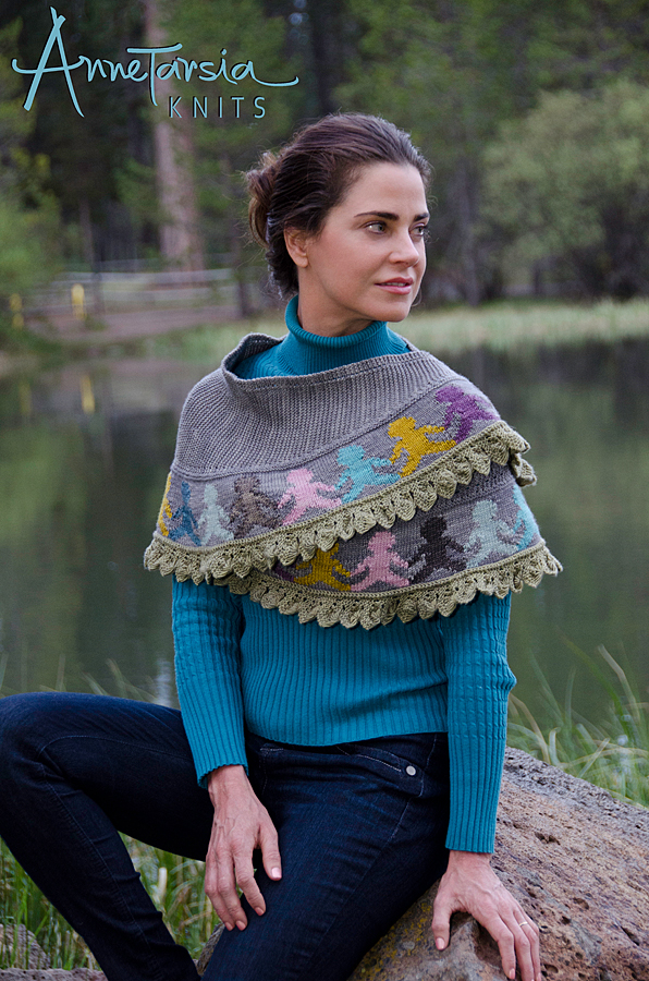 Books don’t work that way, though, so I generally kept to 2 or 3 colors, so that a knitter could re-create a project without buying a whole stash of colors. At least I tried to do this, I really did. But when the Sandy Hook school tragedy happened, and I wanted to knit something to commemorate it for myself, I made the Namanu shawl with Plucky Knitter Primo Sport and used different colors for boys, girls, and teachers. I didn’t use 26 different colors for the dolls, but I did use 8, plus additional colors for the body and the edging, and the 27th doll to represent those who remember the lost. I had no idea that this shawl was going to resonate so deeply, become a favorite of everyone working on the book, and end up on the cover…but, that is what happened.
