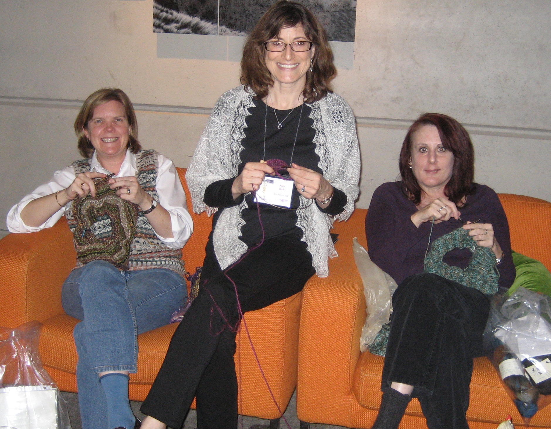 Sara Olson, Jill Betts, Anne Berk, at the Annetarsia Knits Launch party