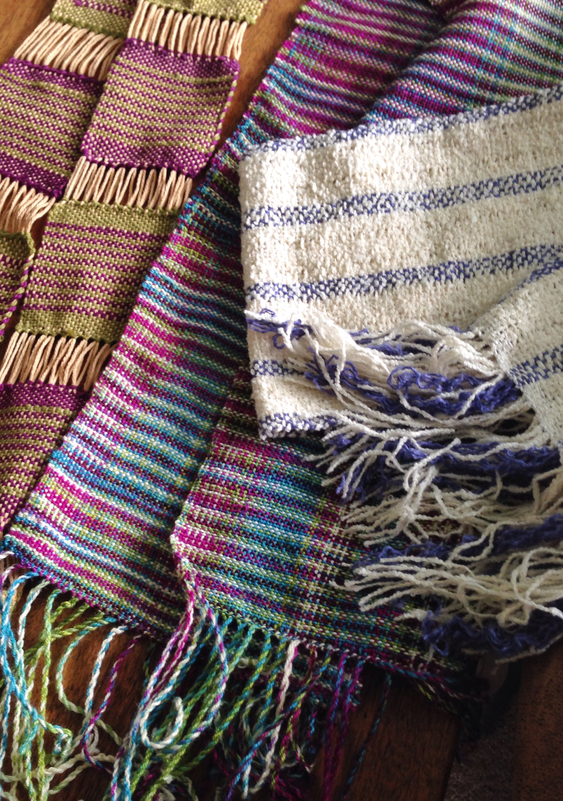 I am a fortunate person in that I have friends – people whom I love and who love me, and we support each other. I never, ever take that for granted. I thought of this today as I finished up the 3 weaving projects I’ve been working on. Currently taking a bath, waiting for wet-finishing, they will be given to people who will know that a hand-made gift is from my heart, and they will cherish these pieces. I’m happy that they are turning out a LOT better than my first projects, as I have studied and practiced weaving, now! I’m really happy with how they are turning out, and will get both of my rigid heddles warped for more projects before the day is out.