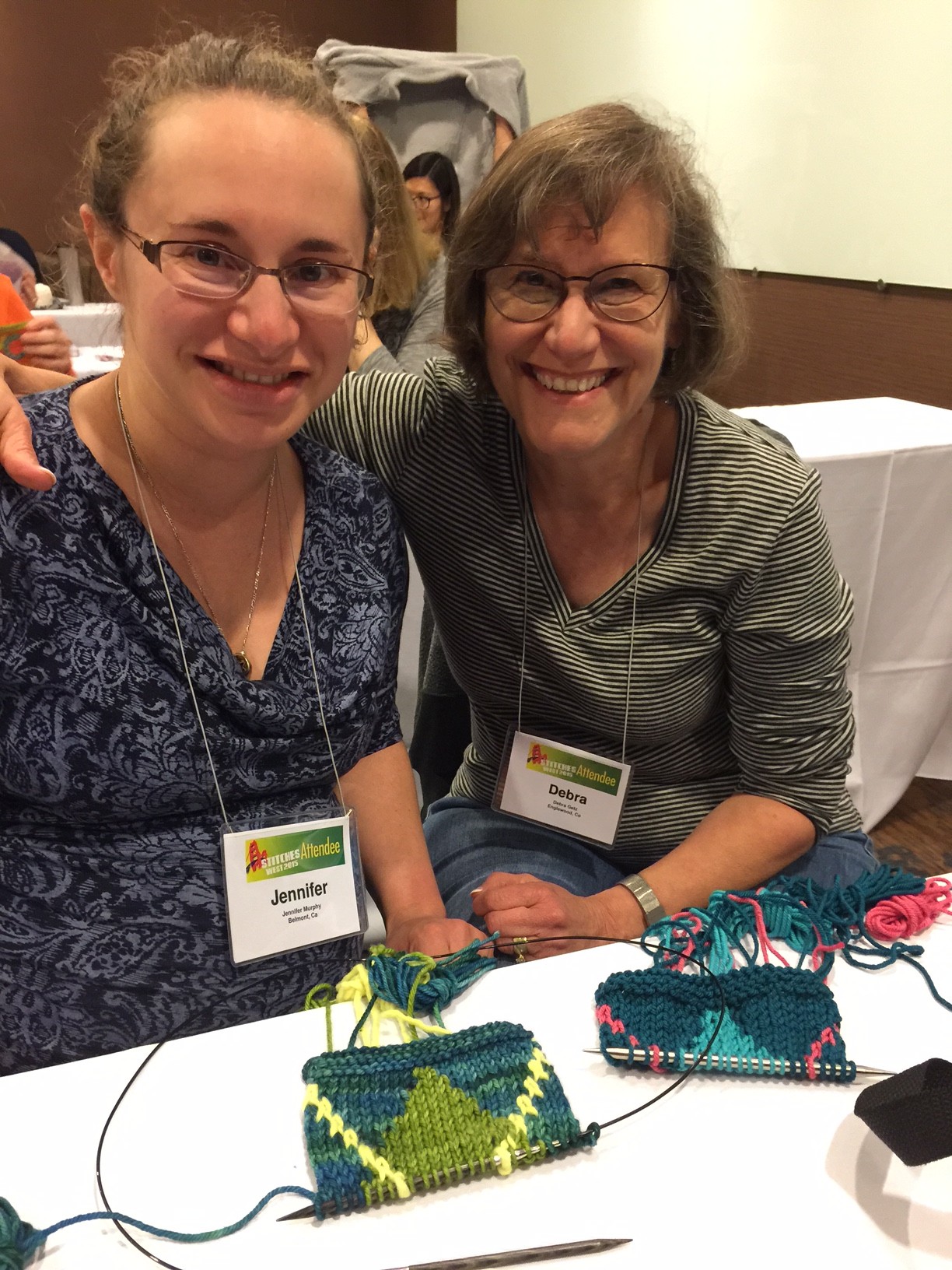 I just heard that Jennifer (on the left) gave birth to a healthy baby girl, Amelia Rose. That is her proud gramma, Debra, on the right. I loved meeting this mother/daughter team at Stitches West, and wish them and Amelia all happiness!