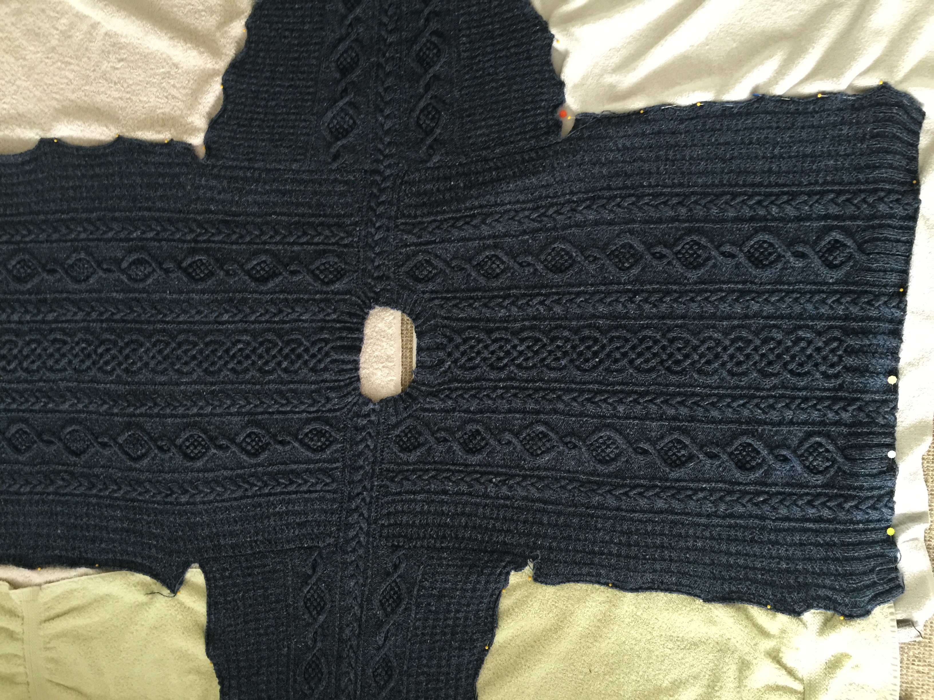 Duxbury Point pullover, blocking. Knit with Simply Shetland Lambswool/silk
