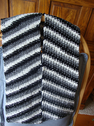 I put Ziggy Zaggy on hold, because I want it to be in progress when I teach Intarsia Garter stitch at Interweave Yarn Fest in a few weeks, and it was progressing so fast I had to stop knitting! I just love knitting that pattern stitch. Linda, from Stitches West, sent me a photo of her completed Dizzy scarf from Intarsia Garter stitch class. She did a great job!