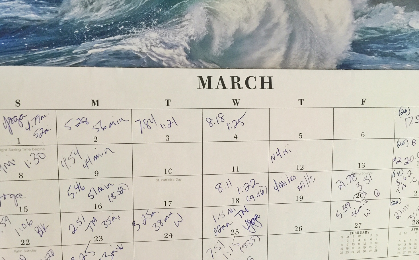 This year I’m coming back from injury, so my training has been cautious.  I have a pile of shoes that I alternate, and orthotics to support my feet.  I keep track of miles, times, terrain and what shoes I wore on a calendar.  Regular massages with Tara at Manual Medicine are keeping my muscles in shape, and I am doing as much yoga and stretching as time allows.  I am immensely grateful to be running again.  I know that my time will be much slower as I keep getting older (don’t you hate how that happens?), and after coming back from injury.  It is not fun to see yourself stop improving, and then actually get WORSE, but that isn’t a reason to quit.  I am determined to keep crossing that starting line and be grateful for the opportunity.