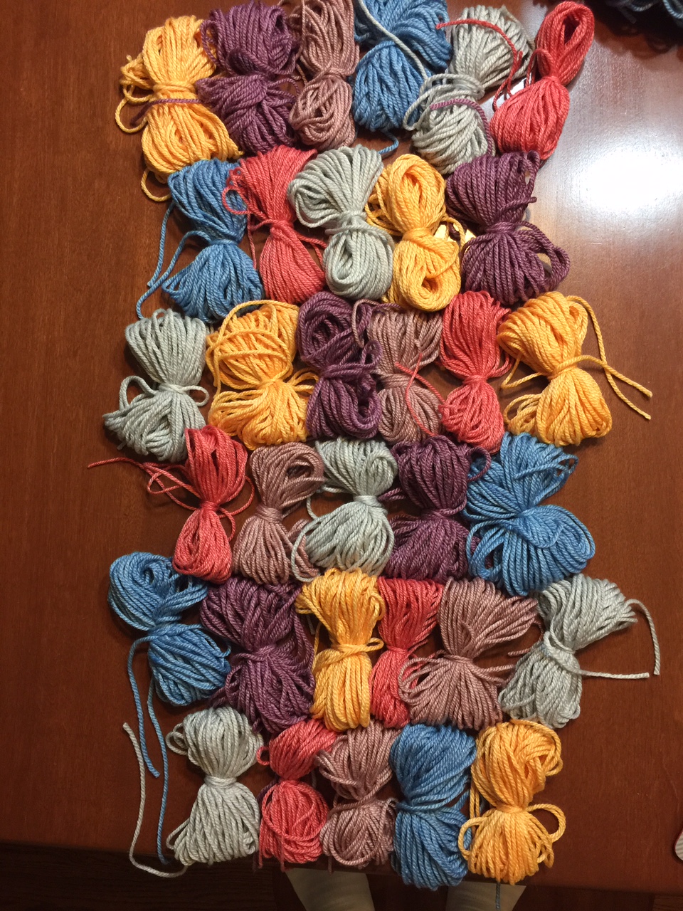 I also ordered a sweaters worth of Sassafrass worsted, to make a sweater that I can wear when I visit the Boutique. I am using the same basic design taught in “Be the Boss”, so that any student who takes the class can knit this sweater if they would like to. Here are the yarn butterflies set out to become the back of the sweater. My color inspiration was “garden at dusk”, and I think this will be cozy, soothing and very pretty!