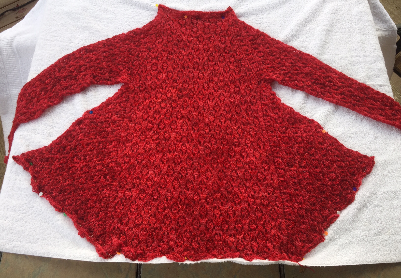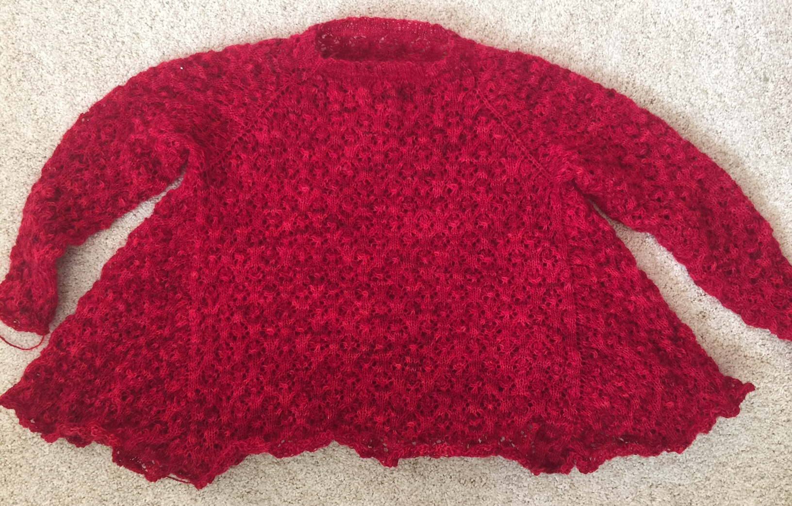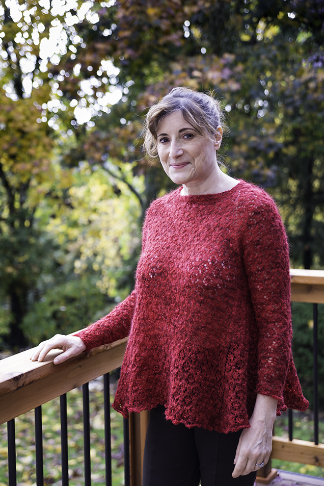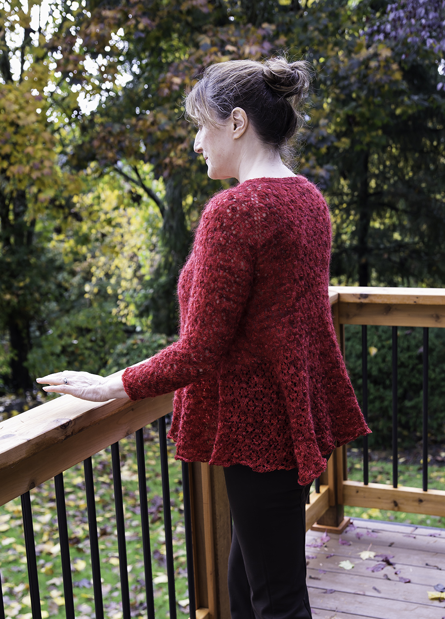 I had a wonderful time knitting this sweater. The pattern is enjoyable, and the yarn is divine – a heavy lace weight with some fluff to it, but strength at the core. Love it!