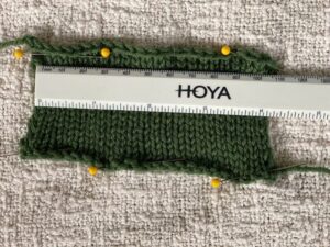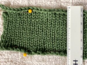 I’ve started knitting a new sweater, Underwood, by Elizabeth Doherty. I want to test her set-in sleeve technique, knit from the top down. I knit and measured my gauge swatches, then blocked them.