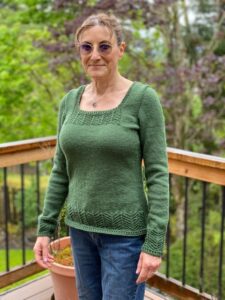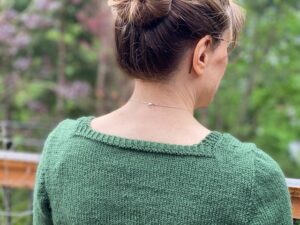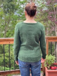 I finished the second sleeve on Underwood this morning. The Cloudborn Highland DK yarn is 100% natural wool, so I was able to split-splice when joining new balls of yarn. This left only a handful of ends to bury. The sweater was knit in one piece, so no seaming. This meant that right off the needles, I was able to try it on.