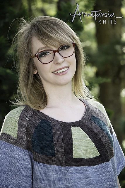 The tunic features my intarsia in-the-round (ITR) technique, and is knit from the top-down, so you do the fun intarsia first, and then have nice easy knitting for the rest of the sweater. It is a great pattern for a gradient kit! The pattern assumes that the knitter has basic knowledge of ITR.
