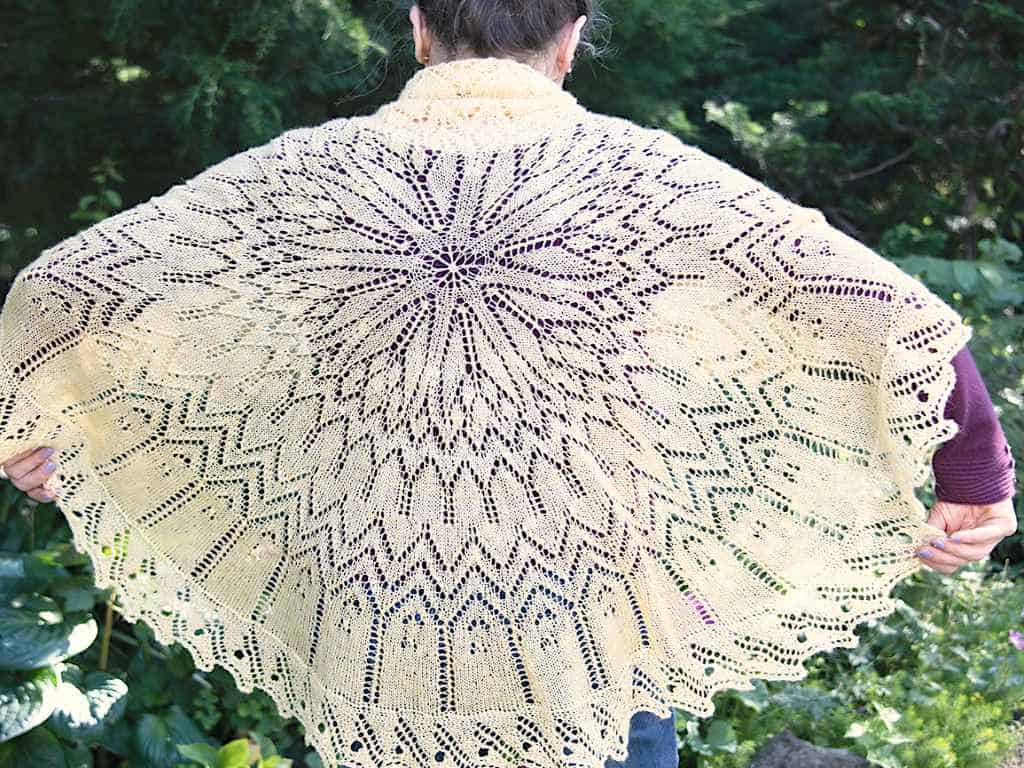 Materials: 1600 (XS, 54′′), 2000 (S, 60′′), or 2400 (L, 72′′) yards of sock yarn and size 4 double-pointed needles plus circular needles of varying lengths (interchangeables work great for this), or one long circular for magic loop. This is the yarn for a complete shawl. You can bring 1 skein of yarn with the appropriate needles for the class.