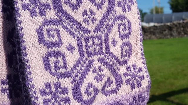 The Symbols: Images of flowers are especially prevalent in Lithuanian knitting, as well as in weaving and in the embroidery decorating women’s blouses and aprons. In the seventeenth and eighteenth centuries, designs of flowers planted in pots became popular motifs on hope chests, window shutters, and spinning-wheel distaffs. Today, lilies, tulips, and other flowers are among the most popular motifs found on mittens and gloves, both in the pieces I’ve seen in museum collections and in the mittens sold in tourist markets and folk-art galleries.