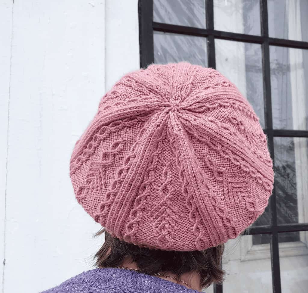 The columns of ribbing that separate the individual motifs on this tam remind me of the legs of a starfish. They are made out of twisted knit stitches that are worked straight up from the brim of the hat to the last few rounds of the crown shaping. Between these columns are charted patterns of Bavarian Twisted Traveling Stitch patterns that were originally designed to form the shaping for a knee sock. I decided these beautiful stitches and shaping would be just perfect for an stunning hat. I hope you agree!